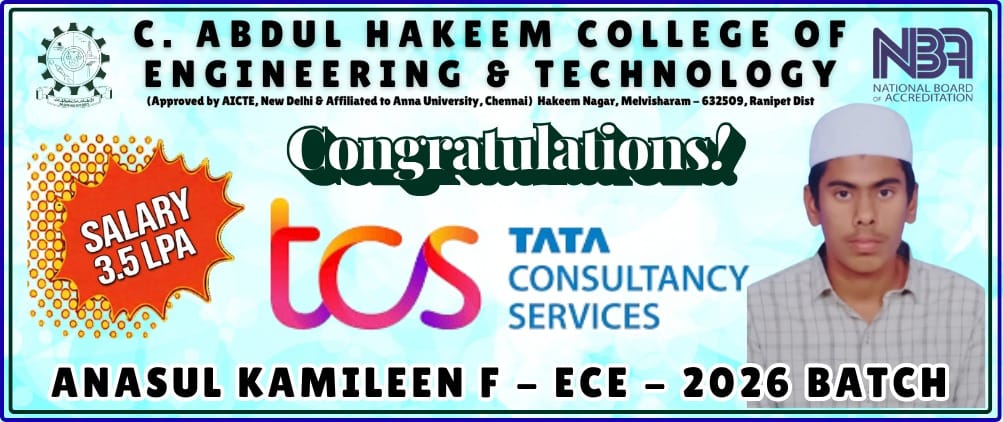 The Training and Placement Cell of C. Abdul Hakeem College of Engineering & Technology, Melvisharam, is pleased to announce a Campus Recruitment Drive by “LG Balakrishnan & Bros Ltd." on the 10th of April 2026.