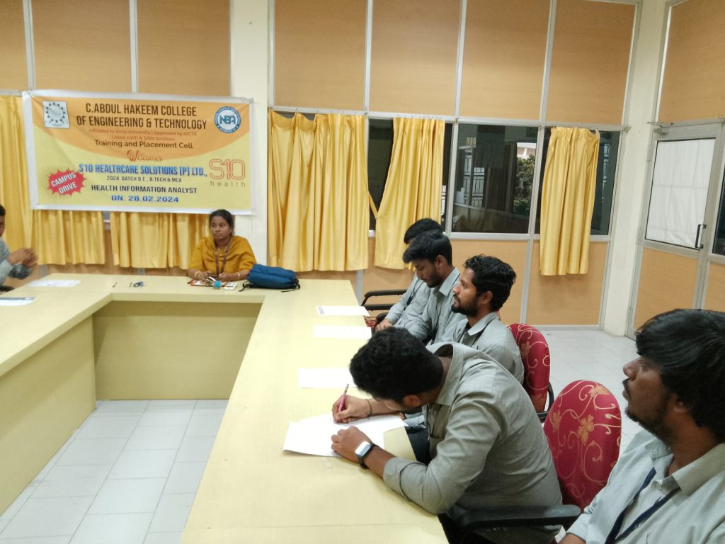 M/s. Career Expert Global Solution (Client: DXC Technology – Bengaluru) conducted the campus interview for the 2024 & 2025 batch of CSE, IT & MCA students at C. Abdul Hakeem College of Engineering & Technology on 04.08.2025.