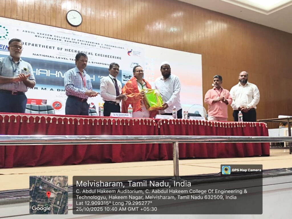 The Department of Mechanical Engineering at C. Abdul Hakeem College of Engineering and Technology proudly organized the “Project Expo 2025” on May 5, 2025. This event provided a vibrant platform for celebrating innovation and promoting a culture of design thinking among the college’s aspiring engineers.
