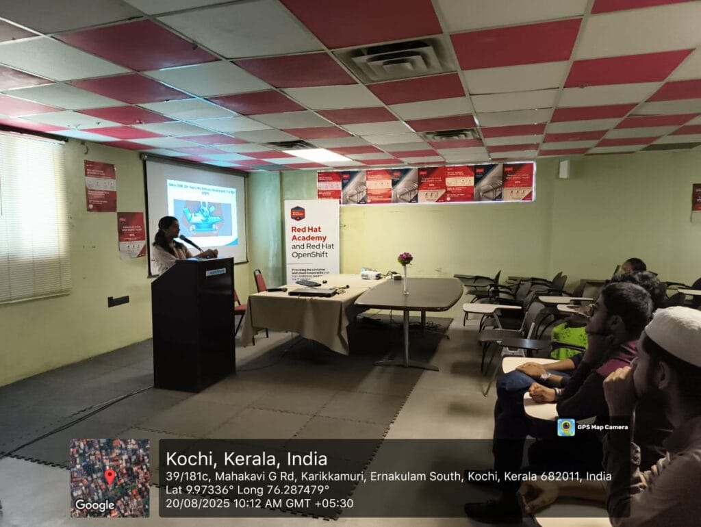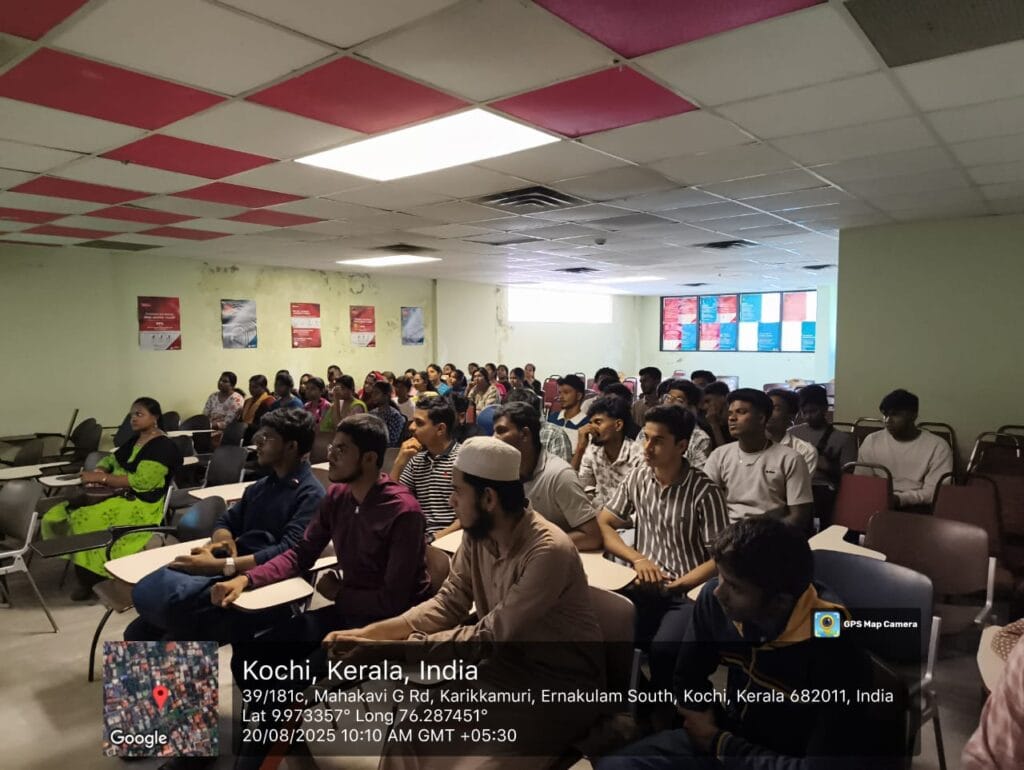Our department organized an Industrial Visit to Spectrum Softech Solution, Kochi on 20th August 2025, with 56 students and two faculty members participating. The session focused on Full Stack Development and the MEARN (MongoDB, Express.js, Angular, React, Node.js) Stack, highlighting real-time applications, career opportunities, and industry demands.