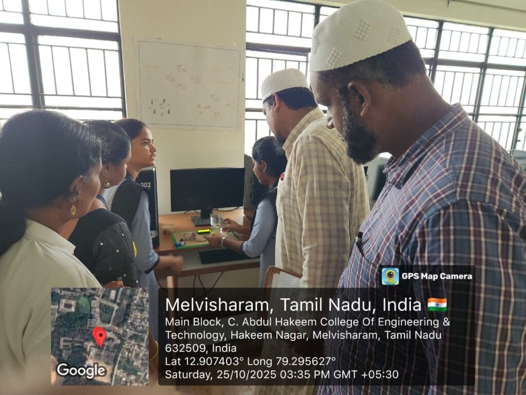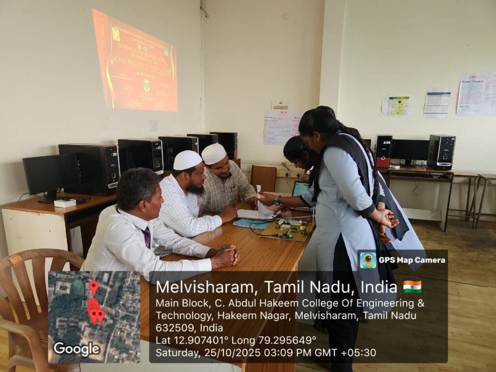 The Department of Information Technology, C. Abdul Hakeem College of Engineering and Technology, organized a Mini Project Expo on October 25, 2025, at 2:00 PM in the Project Room. Students presented their project progress, objectives, methodologies, and current outcomes.