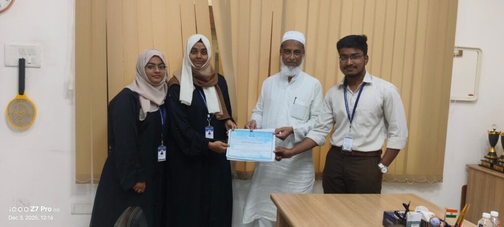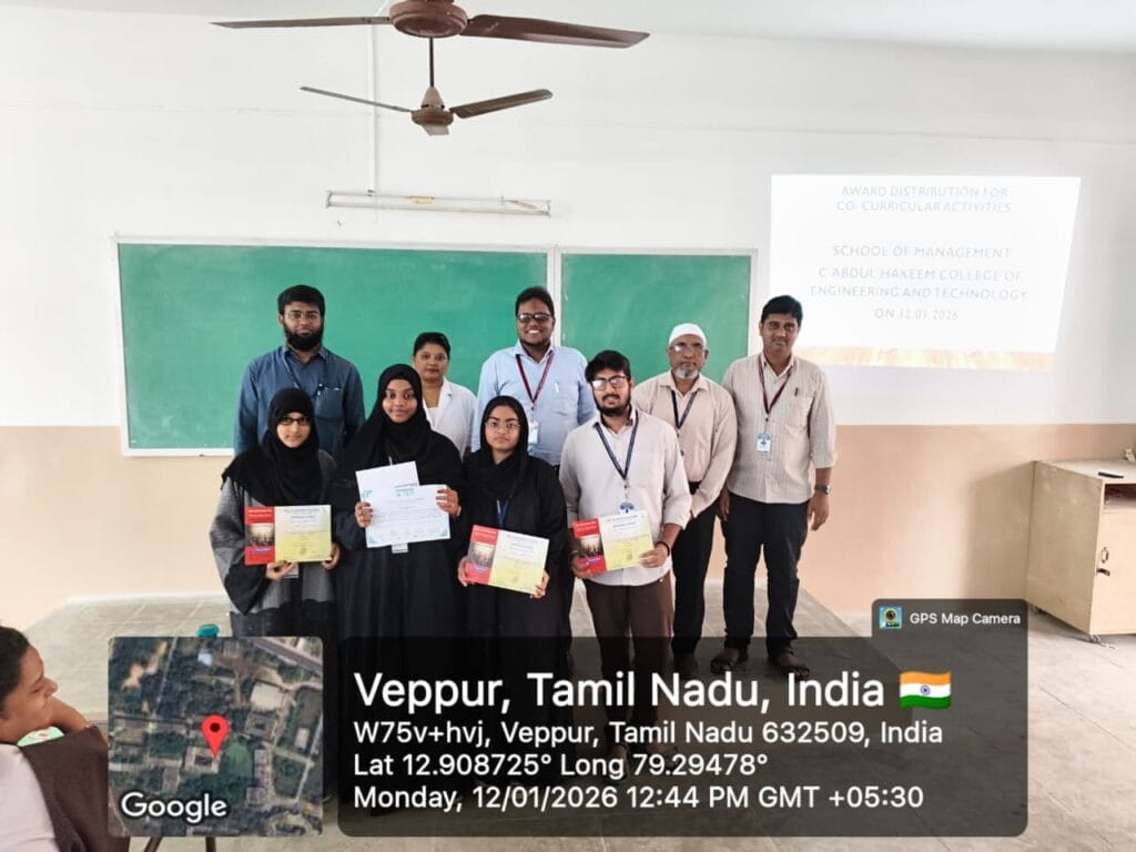 MBA 1st Year students, Neeha Shazia and Aysha Nida from C. Abdul Hakeem College, have won 1st Prize in the PLANPRENEURS 2025 Business Plan Competition, held at SRM IST Ramapuram Campus, Chennai. The duo bagged a cash prize of Rs. 2000 for their outstanding performance.