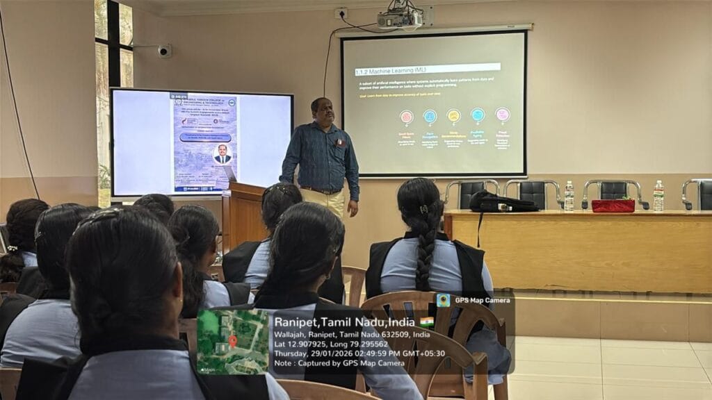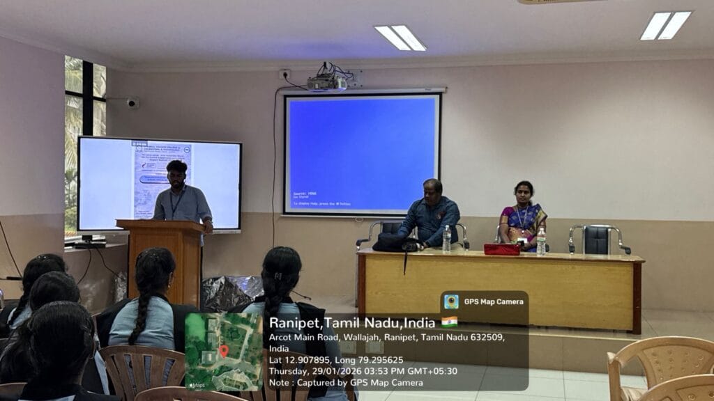An expert talk titled “Generative AI for Creative Intelligence: Generative AI Models, Methods, and Applications” was successfully conducted on 29 January 2026 at the Tower Seminar Hall for II Year – Section A students. The session aimed to enhance awareness and understanding of Generative Artificial Intelligence, its foundational models, methodologies, and real-world applications.