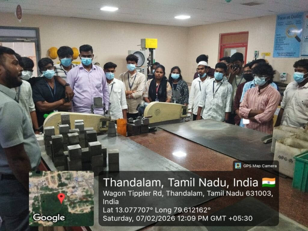 The Department of Civil Engineering organized an industrial visit to UltraTech Cement Industry, Arakkonam on 07th February 2026 for the students to gain practical exposure to cement manufacturing processes.