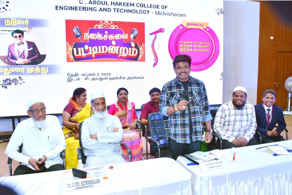 The Nagaichuvai Pattimandram was successfully conducted on 02-04-2026 (forenoon session), hosted by the renowned Madurai Muthu and his team. The event was well coordinated by Mr. B. S. Vijaya Baskar and Dr. B. Sathik Basha. The occasion was gracefully presided over by the Principal, Vice Principal,Chaiman,Correspondent, and all the respected members of the administrative committee, whose presence added great value and dignity to the event.