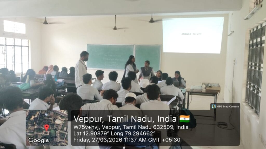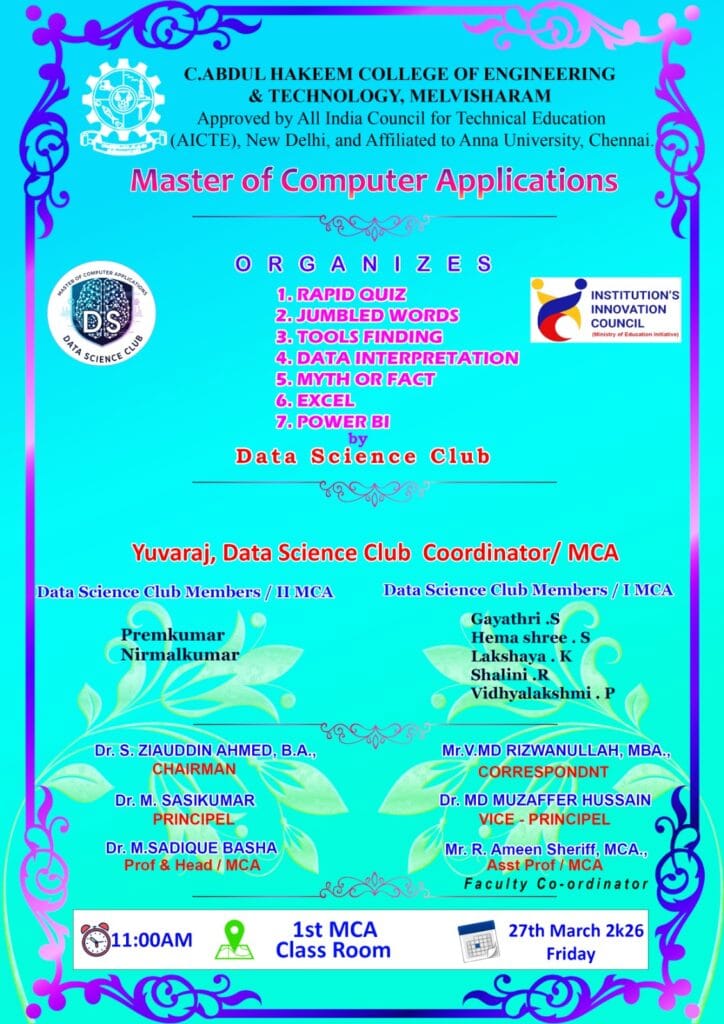 The program was effectively coordinated by Mr. R. Ameen Sheriff, AP/MCA, along with active support from student coordinators Yuvaraj and team (II MCA) and Gayathri S and team (I MCA). Their collaborative efforts ensured the smooth execution of the event.