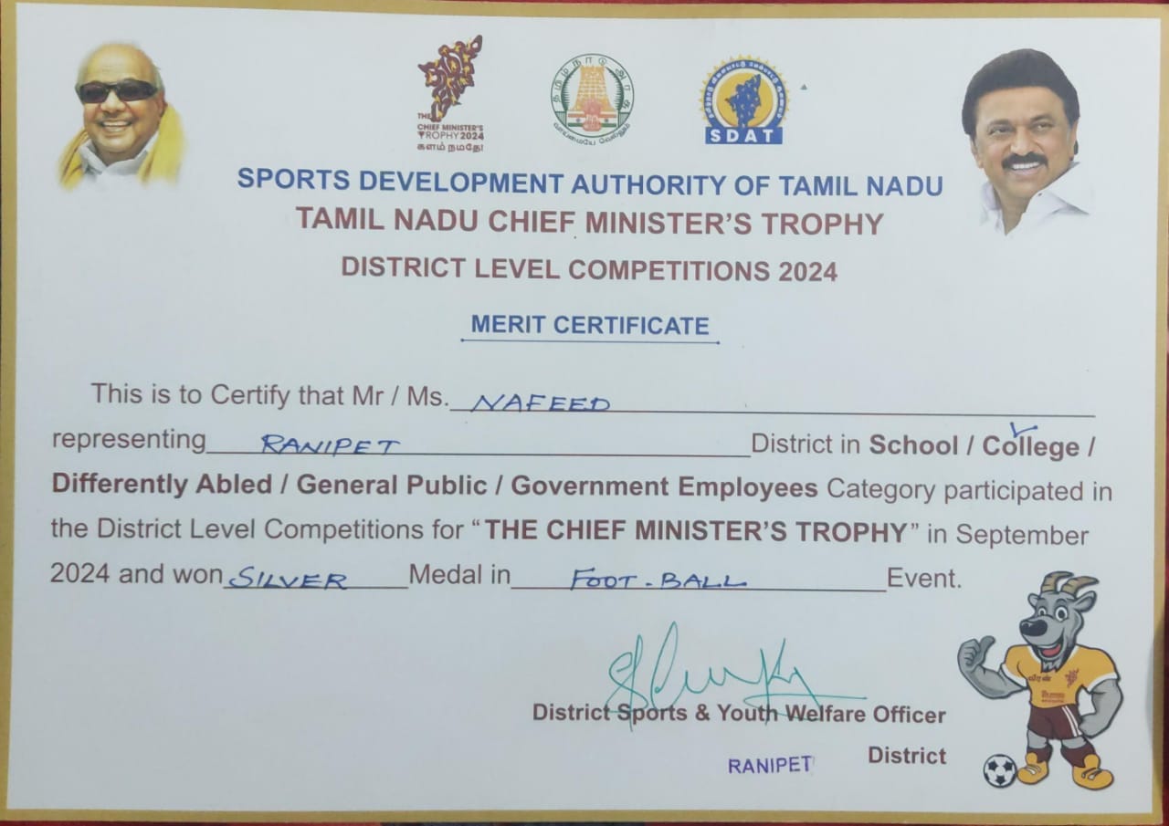 -Secured runner up in CM Trophy football