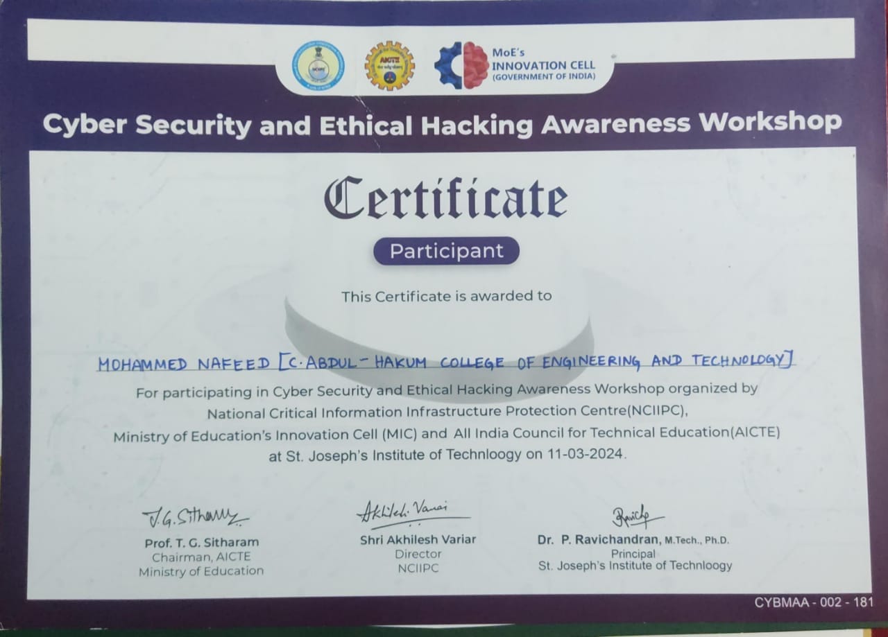 – cyber security and ethical hacking awareness workshop organized by national critical infrastructure protection centre (NCIIPC)