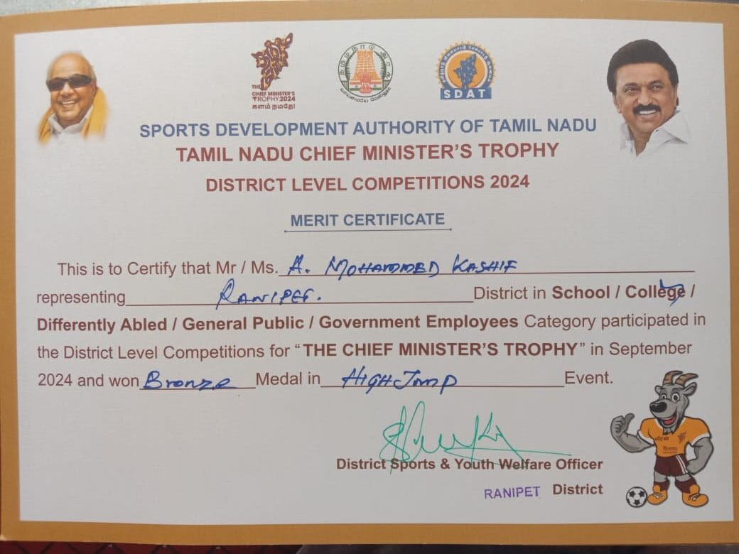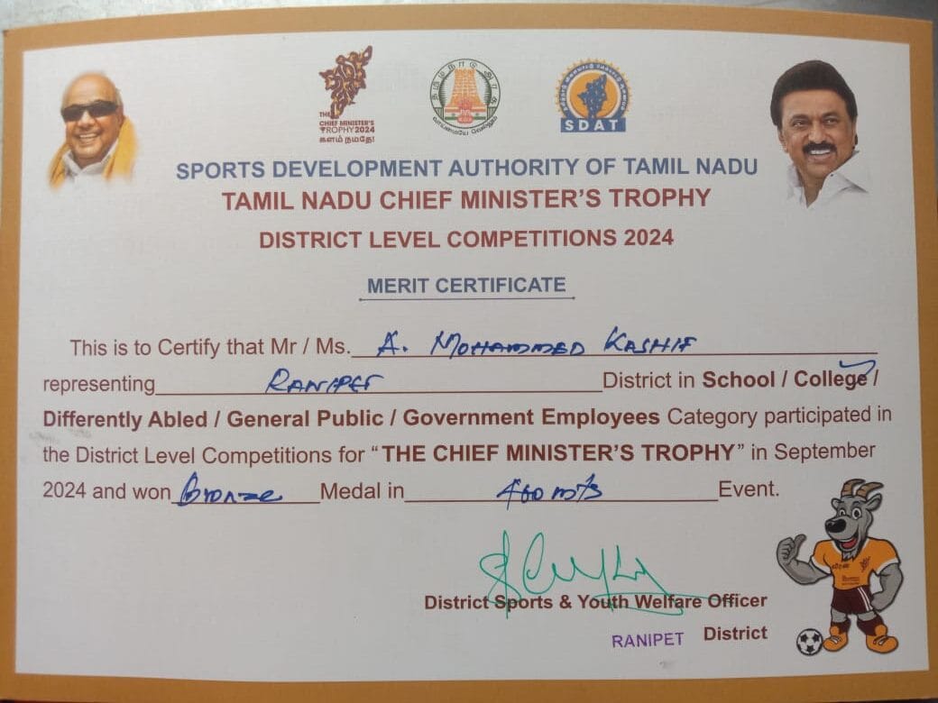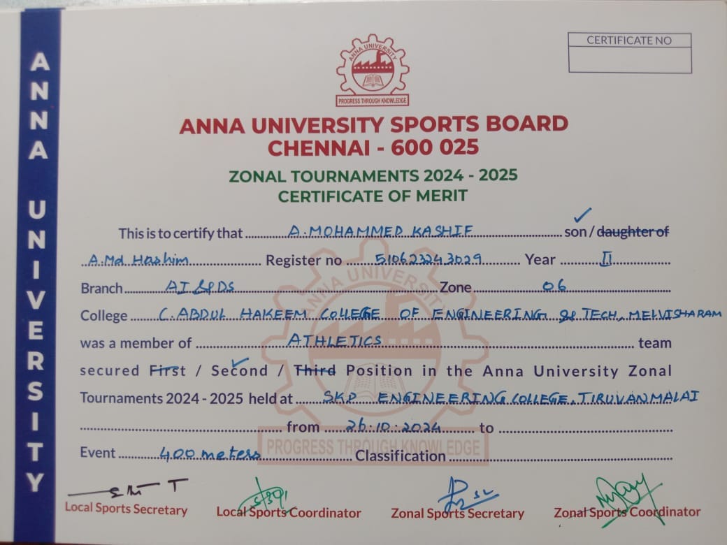 Anna university event interzone 2nd place in 400meters and 3rd place in 4×400 meters.