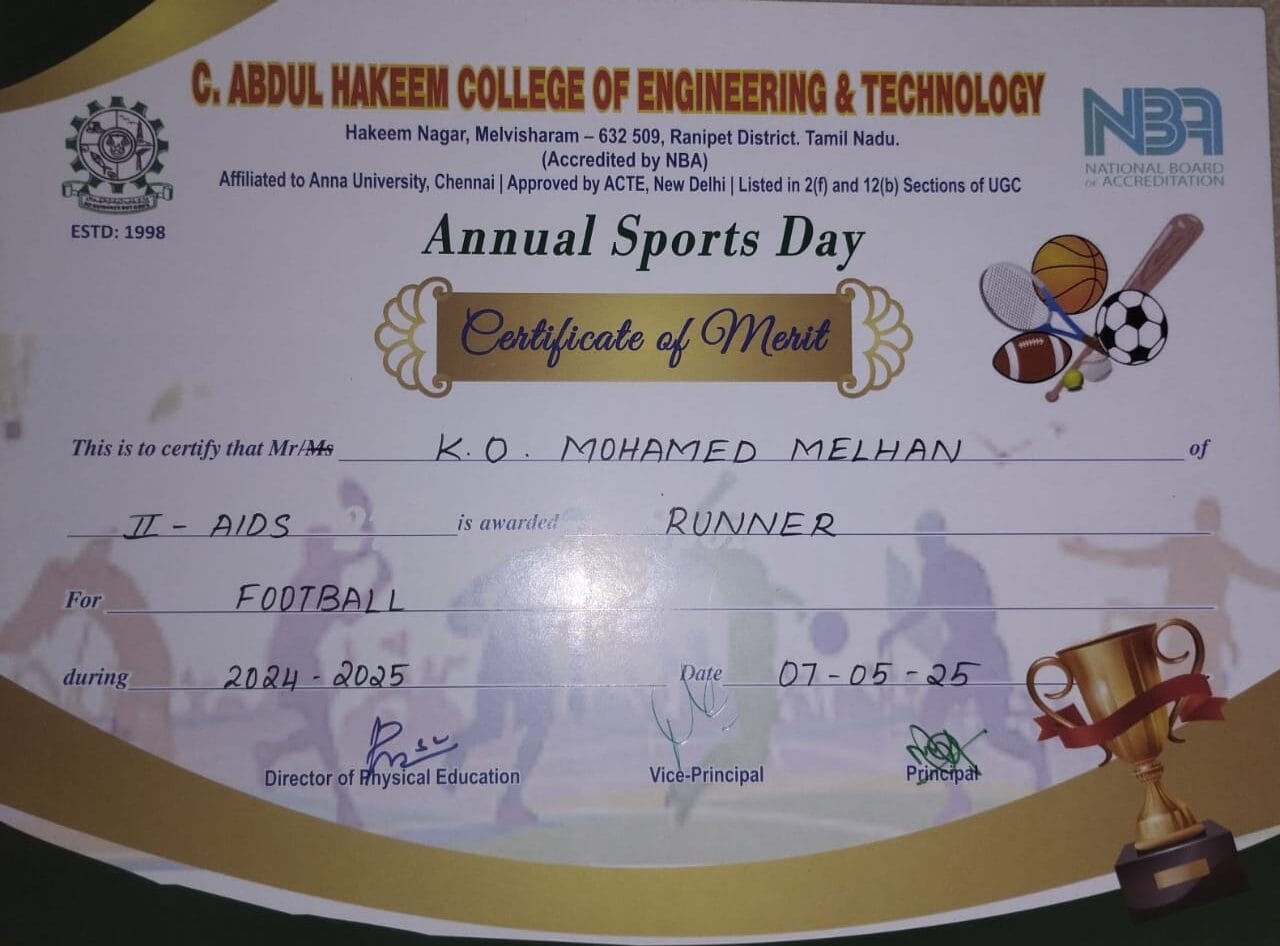 Mohamed Melhan K O – IInd YR AI&DS